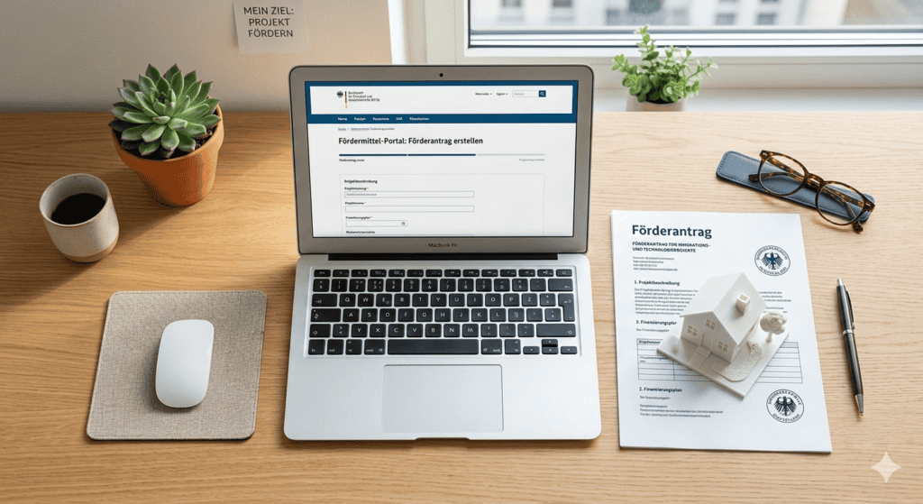 Schritt 3: Förderantrag stellen. Erst den Antrag stellen, DANN den Auftrag erteilen. Das ist bei fast allen Förderprogrammen Pflicht. Wer zuerst baut und dann beantragt, geht meistens leer aus.
